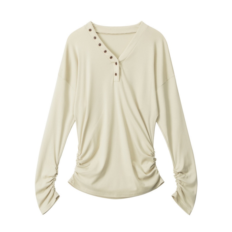 Apricot LongSleeve Top with V-Neck and Waist Accent